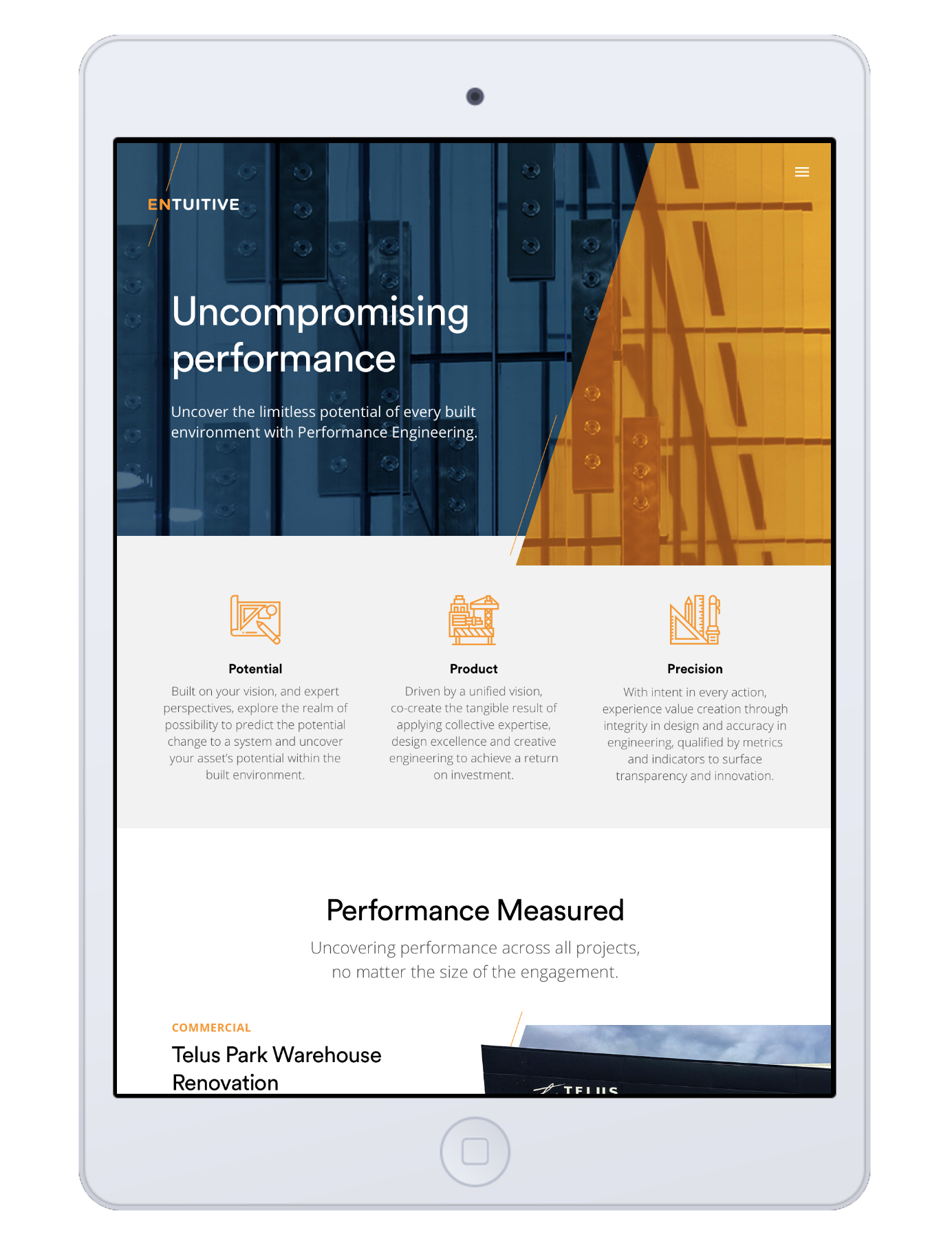 A full rebrand with guidelines and accompanying marketing material was developed for Entuitive, a consultant engineering firm.